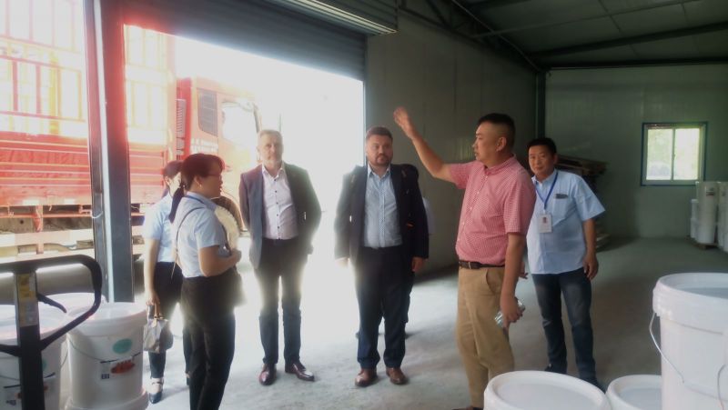 公司总经理徐总和外贸业务经理以及工厂生产部门主管,技术主管代表热情接待了远道而来的客人。 在徐总和各部门主要负责人以及工作人员的陪同下,波兰客户参观了公司的工厂生产车间,实验室,应用墙,以及原材料和成品仓库, 在参观过程中,徐总和我司陪同人员给客户进行了详细的产品介绍,并对客户提出的疑问进行了专业的解答。随后来到会议室,双方就未来合作进行了深入探讨,希望在未来的项目中实现双赢,共同发展。